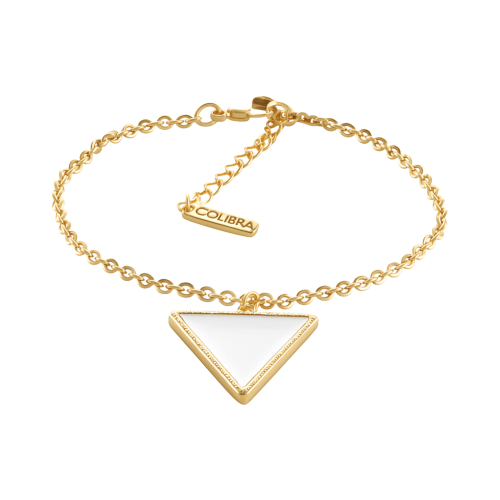 Bransoletka z trójkątną zawieszką to subtelny dodatek o nowoczesnym charakterze. Delikatny złoty łańcuszek ozdobiony geometrycznym detalem z białą emalią tworzy minimalistyczną, a jednocześnie wyrazistą całość. Idealna do noszenia na co dzień – solo albo w połączeniu z innymi bransoletkami, podkreśla styl i dodaje elegancji każdej stylizacji. Długość bransoletki: 17 cm + 4 cm przedłużki