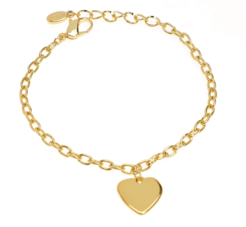 Najnowsza kolekcja bransoletka z sercem. Długość 18cm + 4cm, grubość 0,1cm, zawieszka 1,5cm x 1,7cm, grubość 0,1cm. Bransoletka pozłacana.