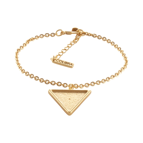 Bransoletka z trójkątną zawieszką to subtelny dodatek o nowoczesnym charakterze. Delikatny łańcuszek ozdobiony geometrycznym detalem tworzy minimalistyczną, a jednocześnie wyrazistą całość. Idealna do noszenia na co dzień – solo albo w połączeniu z innymi bransoletkami. Długość bransoletki 17 cm + 4 cm przedłużki.
