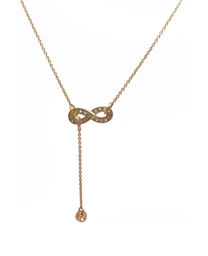 Zawsze modny znak nieskończoności. Długość łańcuszka 45cm + 5cm. Zawieszka długość 1,7cm, szerokość 0,7cm. Celebrytka pozłacana.