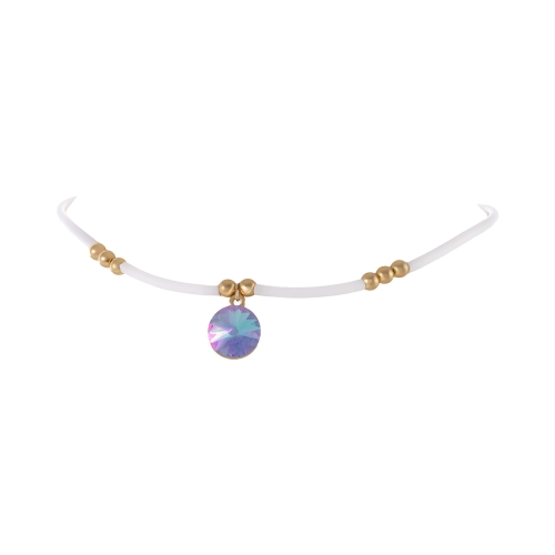 Nowoczesna elegancja w minimalistycznym wydaniu. Choker wykonany z elastycznego, białego kauczuku doskonale układa się na szyi, a centralny punkt stanowi efektowny kryształ Primero, który subtelnie mieni się w świetle.