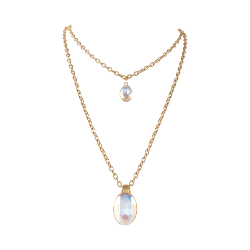 Długi naszyjnik z owalnymi, wiszącymi kryształami Primero, to efektowna i niezwykle uniwersalna biżuteria, która pozwala na różne sposoby stylizacji. Delikatny łańcuszek zdobią dwa kryształy: duży, owalny, umieszczony na dłuższej linii oraz średni, subtelnie zawieszony bliżej szyi, tworząc elegancką, warstwową kompozycję. Naszyjnik można nosić klasycznie jako długi model lub zawinąć dwukrotnie wokół szyi, uzyskując krótszą, bardziej wyrazistą formę. Szlachetny blask kryształów pięknie odbija światło, nadając całości elegancji i lekkości. To idealny dodatek zarówno do codziennych stylizacji, jak i wieczornych kreacji.