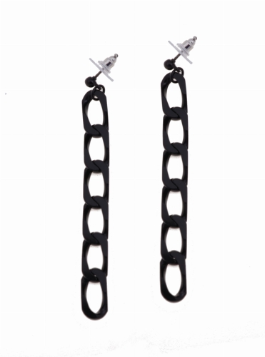 Kolczyki to idealne uzupełnienie każdej stylizacji. Kolczyki o długości 7,5cm pokryte rutenem powlekanym elektroforezą i czernione. Kolczyki przypominające gruby łańcuch.