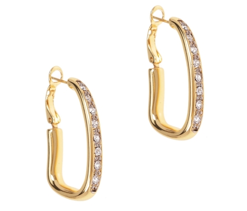 Klasyczny wzór kolczyków z kryształkami Preciosa. Kształtem przypominające wydłużony prostokąt. Długość 3,4cm szerokość 0,5cm grubość 0,3cm. Kolczyki pokryte 24-k złotem.