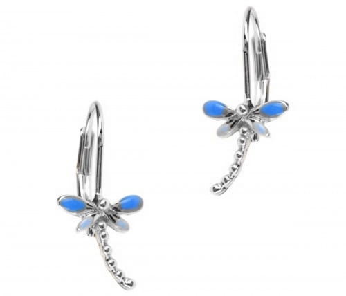 Urocze kolczyki ważki z niebieskimi skrzydełkami. Urocze i subtelne. Długość 2,1cm, szerokość 2cm. Kolczyki posrebrzane z niebieskimi elementami.