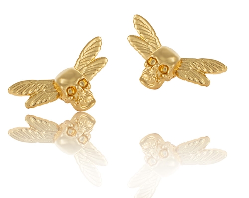Pozłacane kolczyki czaszki ze skrzydłami, to biżuteria o niezwykle nietypowym i intrygującym kształcie. Długość kolczyka 1cm, szerokość 1,9cm.