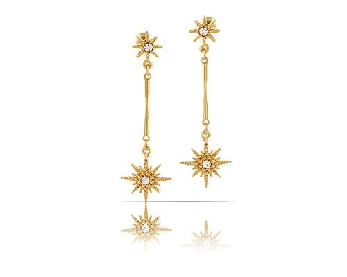 Pozłacane kolczyki śnieżynki z kryształkami Preciosa. Długość kolczyka wynosi 5,5cm, szerokość 1,6cm.