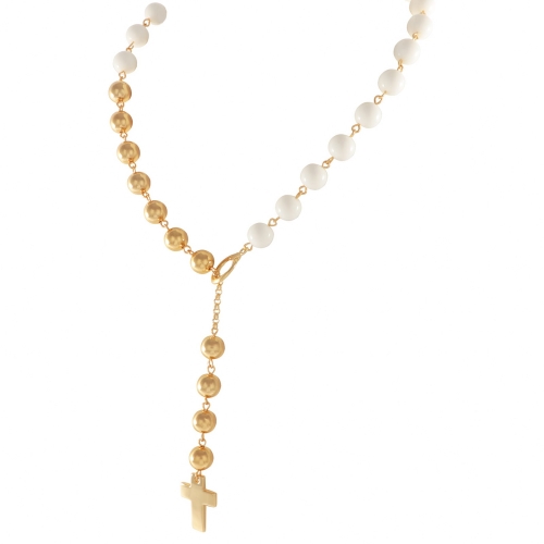 Pozłacany naszyjnik – krawatka z agatamii i krzyżykiem. Długość naszyjnika 42 cm + 8 cm przedłużki. Długość przodu ok 10 cm.