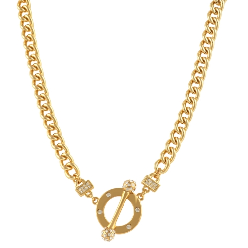 Pozłacany naszyjnik z kółkiem i berłem wysadzanym kryształkami Preciosa. Długość 45 cm + 7 cm przedłużki. Wielkość ozdoby 2,5 cm x 3,5 cm. Waga naszyjnika 65,3 g.