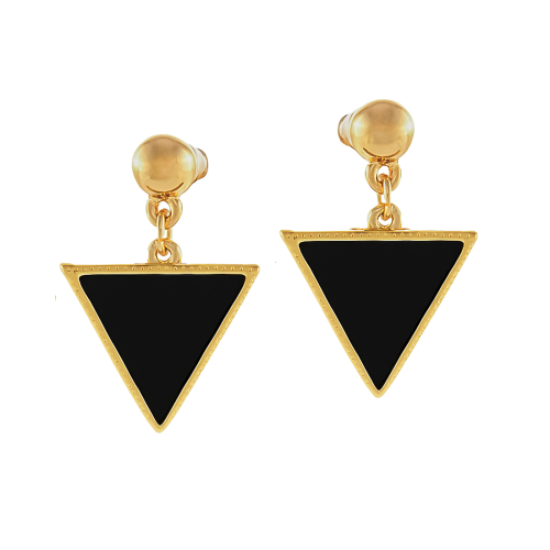 Te stylowe kolczyki o geometrycznym kształcie trójkąta łączą elegancję złota z nowoczesnym akcentem czarnej emalii. Wykonane z wysokiej jakości metalu pozłacanego, mają lekko fakturowane brzegi, które subtelnie odbijają światło, podkreślając kontrast między błyszczącym złotem a głęboką czernią wnętrza. Idealne dla osób ceniących minimalistyczny, ale wyrazisty design — doskonale dopełnią zarówno codzienne, jak i wieczorowe stylizacje.